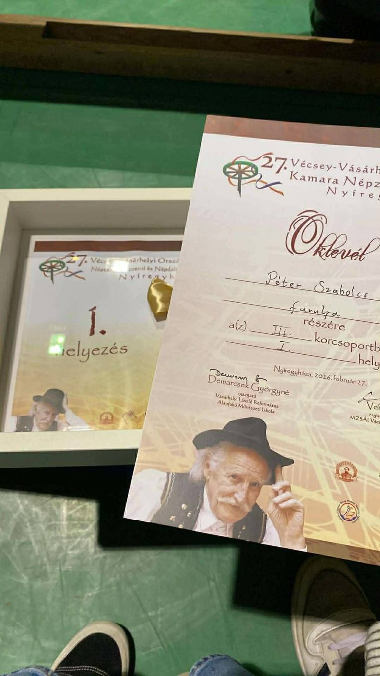 Büszkén adjuk hírét, hogy Péter Szabolcs a február 28-án Nyíregyházán megrendezésre került XXVI. Vécsey-Vásárhelyi Országos Kamara Néptánc, Népzenei és Népdaléneklési Versenyen két hangszerrel is megmérettette magát, nem is akármilyen eredménnyel: